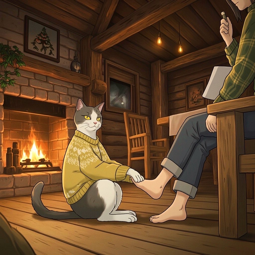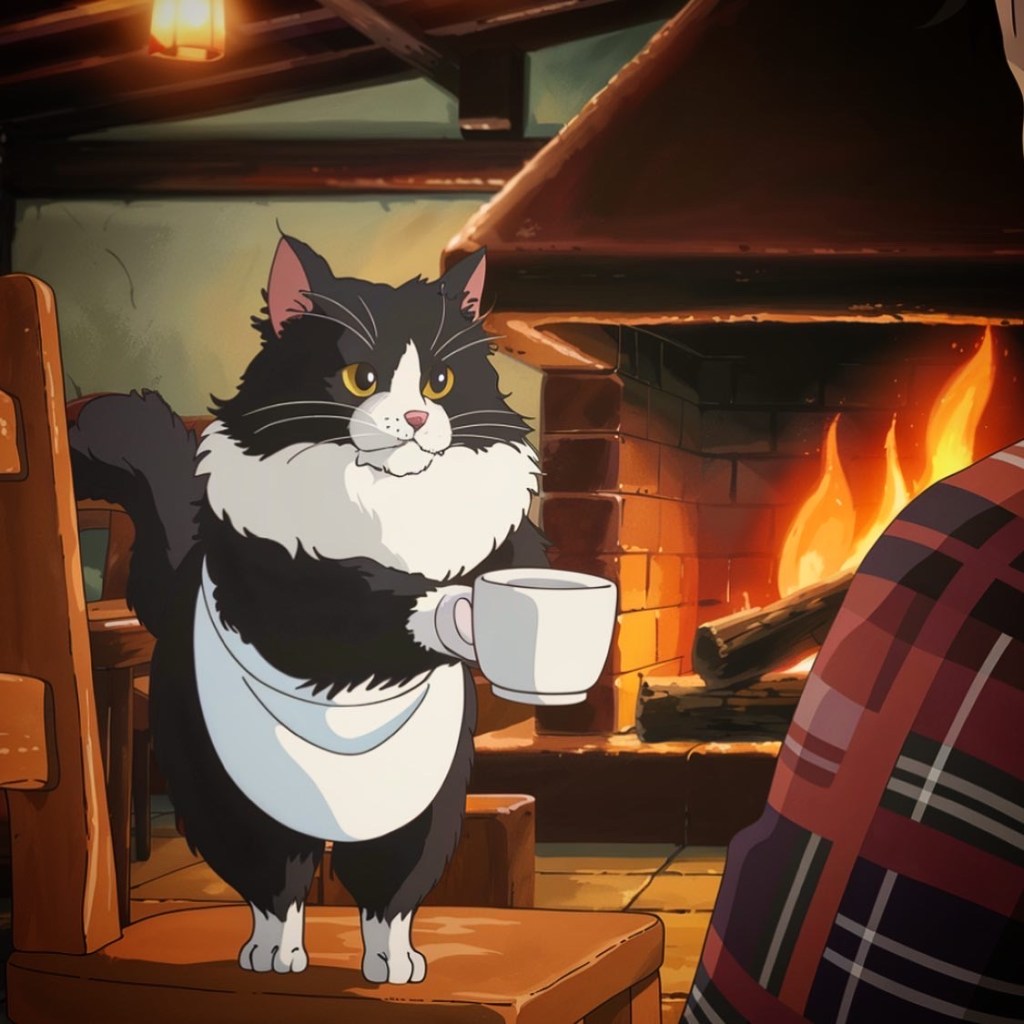 「右も左も真っ白で上も下もわからない吹雪の中突然目の前に現れた山小屋。少し休ませてもらうことにした。家主の黒猫はシチューと作っているところで私に食べるかと聞いてくれた。ハチワレの子は寒かったでしょと足を温めてくれた。毛むくじゃらの子は自分のミルクを温まるからと差し出してくれた。迷子になり不安で押し潰されそうだったところにコレはくる。泣きそうになるのを必死に堪えて彼らの優しさに甘えることにした」〜キキの朗読による〜